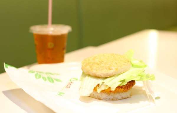 在菜单上,也会有属于“舒食+”概念店的标配产品,如米汉堡、色拉、绿茶,还有重点强调的现磨咖啡。我们看到,不同于社区店型,这家德克士把咖啡机放在了点餐台上显眼的位置,更多地是为了迎合来展会的商务客人和外国客人。此外,店内产品的价格也会相应高出 50-60%。比如,明星产品手枪腿价格为 26 元,而一般门店只卖 22 元。