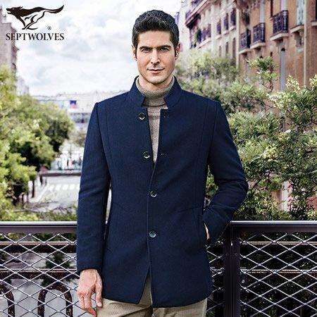 (原标题:夹层加厚/时尚保暖,七匹狼男士休闲立领毛呢大衣399元)