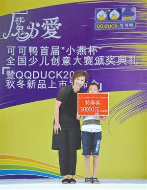 据悉,绘画大赛历经赛事作品征集、海选期及网络投票评选期,在公平公正的基础上评选出100名获奖作品。当特等奖奖品3万元可可鸭现金券颁发到作者手中,全场响起了热烈的掌声,大家由衷地为这位未来之星喝彩。据可可鸭品牌童装董事长程春桃女士介绍,“本次大赛为孩子们提供了一个挥洒创意与才艺的平台,可可鸭品牌童装希望把对孩子的爱通过企业所承担的社会责任传递下去,为孩子们搭建一个通往艺术、通往美好未来的桥梁。”(吴逸君)