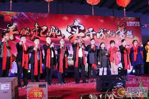 18时整,晚会正式拉开帷幕。蓝姆特总经理助理陈惠云先生首先带领大家回顾了蓝姆特2014年蓝姆特的大事记,展现了过去一年所取得的辉煌成绩,乔梓峰总经理发表了热情洋溢的祝酒词,祝福大家在羊年事业扬帆起航,以更加实干的精神的务实笃行,去开创和成就自己的梦想!