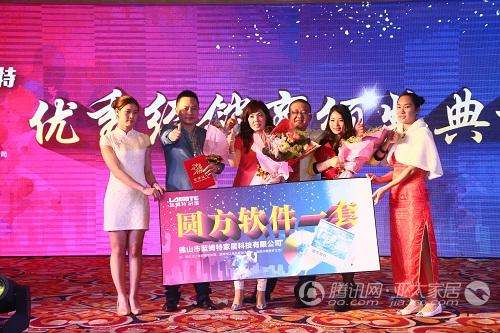 当晚,大会举办了“‘蓝姆特2015设计家新品发布暨八周年庆典’大型答谢晚宴”。晚宴上,大会为蓝姆特9位优秀经销商颁发了“2014年度优秀经销商”荣誉称号。