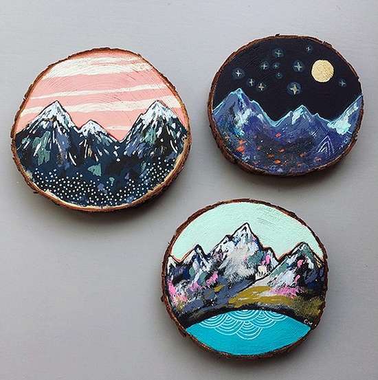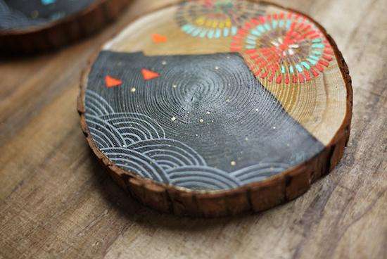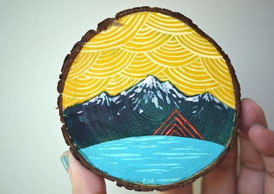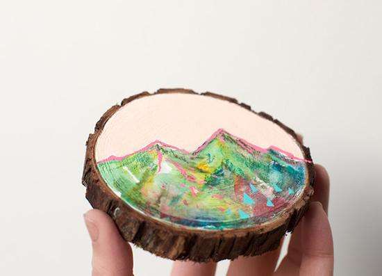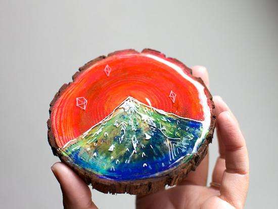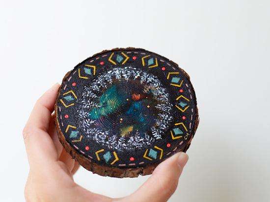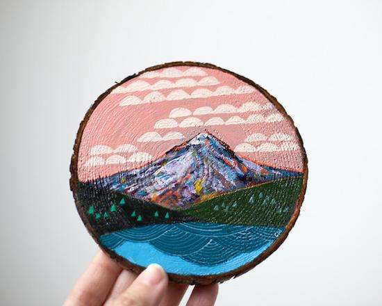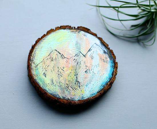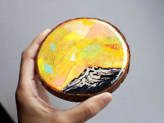 、编织、摄影、拼贴都是她描绘自然之美的“画笔”。一次偶然的机会Cathy尝试了在雪松木上结合松木纹绘“松木画”,没想到效果却出奇的好,从此Cathy对“松木画”的爱便一发而不可收。松木纹的脉络肌理给的画增添了些许迷幻的味道,如迷迭香般有一种微妙的“