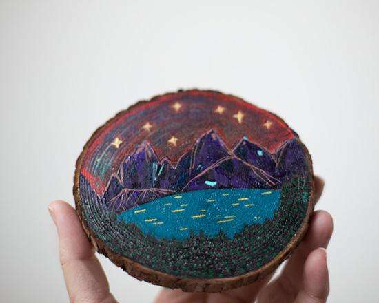 之美”;而富有想象力的配色与细腻独特的笔触落在松木上,给我们展现了一个童话般的微缩世界。