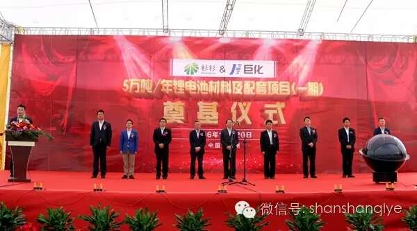 2016年10月20日上午,杉杉股份与巨化集团5万吨/年锂电池材料及配套项目正式奠基。衢州市委副书记、市长杜世源宣布项目开工。宁波杉杉股份有限公司董事长庄巍,市领导傅根友、胡仲明、汤飞帆出席仪式。