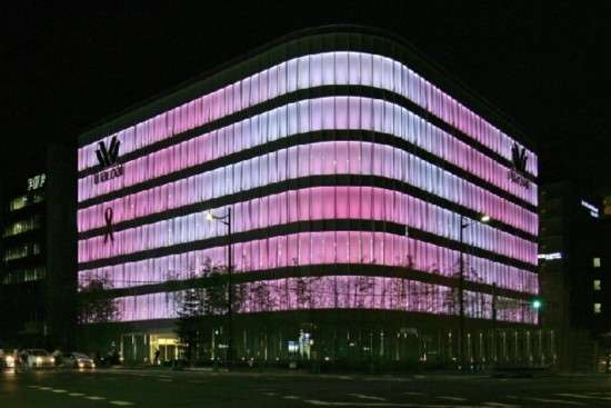 日本京瓷株式会社的高显色LED灯日前被华歌尔(WACOAL)新京都大厦采用,用于美化大楼外观。