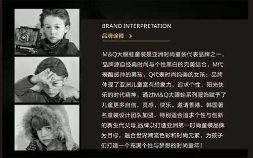 童装是亚洲时尚童装代表品牌之一,产品围绕“时尚”、“帅气”、“炫丽”系列打造,邀请香港、韩国著名童装设计团队加盟,特别适合追求个性与创新的新生代父母的审美观,品牌以打造亚洲第一时尚童装品牌为目标,融合世界潮流色彩和时尚元素,为孩子们打造一个充满个性与梦想的时尚童年!