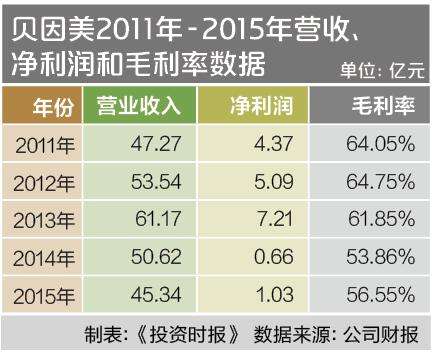 《投资时报》记者查阅贝因美上市以来历年年报发现,转折点发生在2014年。2011年上市当年,贝因美全年实现营收47.27亿元,与2010年相比增长17.34%,净利润达4.37亿元,同比增长3.49%。