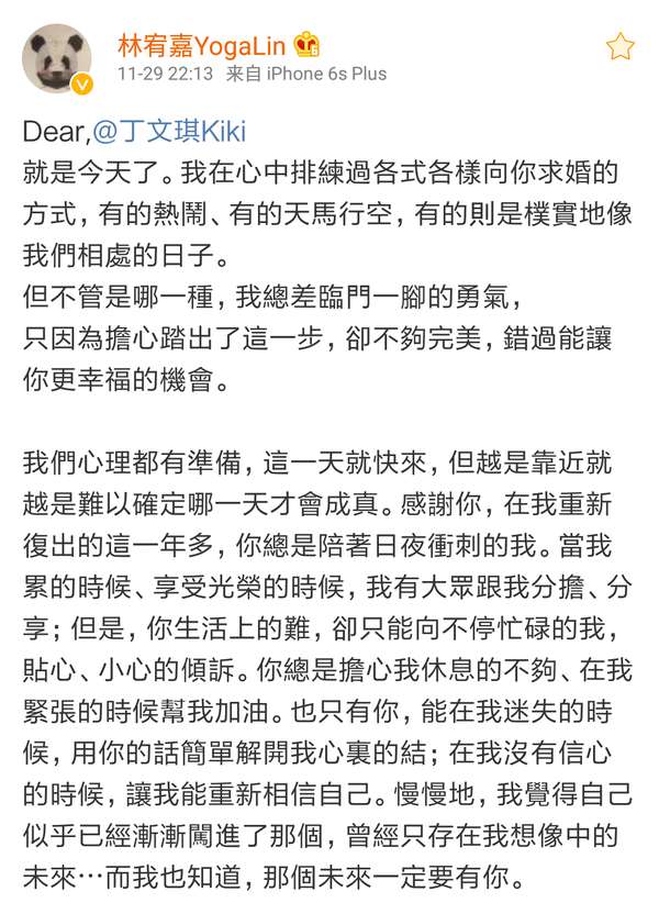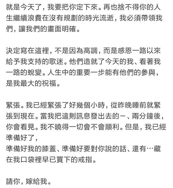 ,看到591字的求婚长文时,才真实地感受到,林宥嘉真的向女友丁文琪求婚了!