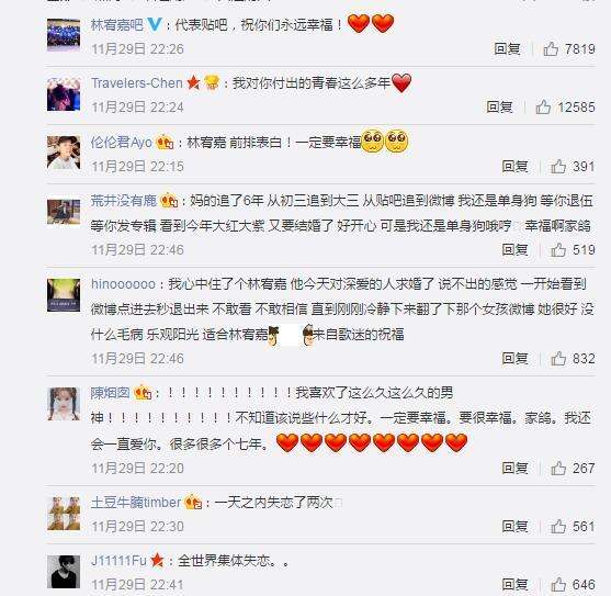 分分钟过万,集体失恋的迷妹们双手双脚为男神送上了爱心,既被他的求婚深深感动,又为他找到自己的幸福而感到开心。
