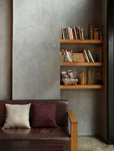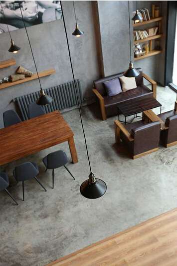 设计理念基于非常有限的材料,如钢结构楼梯、柱子,一楼主要采用了混凝土地面及墙壁,夹层则以木家具,搭配温暖的灯光,为室内营造出舒适的氛围。