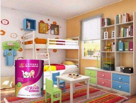 每个孩子的心中都有一个属于自己的童话,都希望自己的小小房间可以像童话一样完美,那么,如何打造一间健康环保的童话家居环境?让用红苹果儿童房专用墙面来帮孩子们打造多彩缤纷的儿童房居室。作为中国十大涂料品牌红苹果漆旗下的儿童房专用墙面漆红苹果全效净味儿童漆,专为孩子打造的环保健康漆。它采用了净化甲醛粒子激活技术,具有抗(抑)菌功能;全方位净化空气中的多种有害物质(TVOC),室内空气持久清新,自身不含甲醛,超低VOC,全面解决墙面26大常见问题的全效功能;在全效功能基础上特别添加了“天然活性竹炭因子”,配合“高效除醛科技”,全方位捕捉并净化游离在空气中的甲醛、苯及多种TVOC有害物质,让室内空气保持清新自然,更全面地呵护儿童健康。红苹果全效净味儿童漆涂刷出来的漆膜硬度好、耐擦洗,能够轻松擦洗孩子们在墙面上的涂鸦、污渍,并且不留痕迹,依然光滑细腻,让墙面持久清新亮丽。