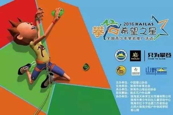 由中国登山协会主办的“2016凯乐石全国攀岩希望之星年终交流大会”,于12月3日在珠海青少年妇女儿童活动中心蓝天攀岩馆盛大开幕。共有来自全国60多支代表队的300多名青少年攀岩爱好者和200多位领队、教练及小朋友的家长参加。本次交流大会设难度、速度、攀石三个项目,按年龄从4岁到18岁分为七个组别,其中F组只进行难度和速度体验。