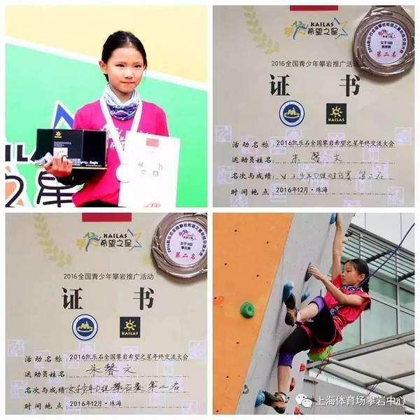 荣获“女子D组攀石第二、难度第二、速度第四”