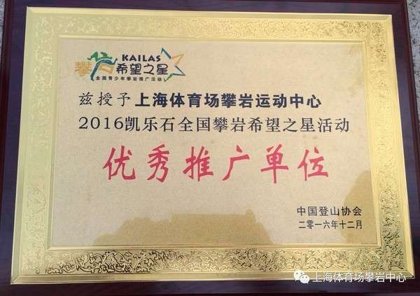 获得“优秀青少年攀岩推广单位”