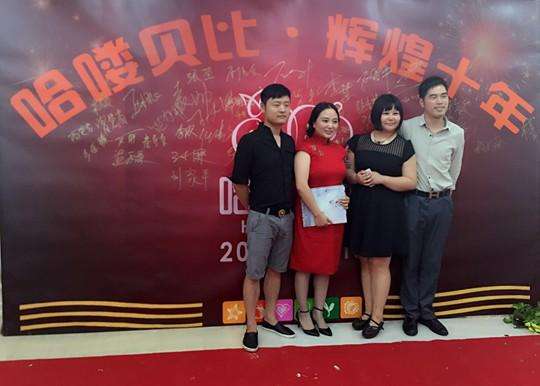哈喽贝比早教机构集哈喽贝比早教中心,中国好父母、人事部委托的中国儿童成长培训师、文化部书法家协会委托的儿童国家经典传承项目,紫荆花?国际幼儿园等五个品牌于一身,经过十年历程,担负着早教行业的责任与荣誉。庆典上,创始人王华平女士表示,在这个充满意义的日子里,对社会各界人士的帮助与支持以及哈喽贝比人的辛勤付出,表示真诚的感谢。