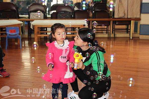 瞧!两岁左右的小宝贝们和老师一起律动得多开心:扭扭小屁屁,抖抖小手手,晃晃小脑袋。老师一声:“宝贝们,追泡泡咯!”呼啦一下,孩子们像小鸟一样都飞奔到老师处,一会儿和七彩泡泡共舞!一会儿和老师一起搓小圆子,品尝一下自己亲手做的圆子,嗯~真香甜!