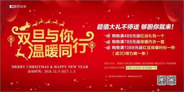 实力爆款双旦来袭,believe it or not,小编已心动,迫不及待想把活动内容告诉你!是的,红豆男装双旦活动也正在如火如荼地进行着,线下门店活动力度大,即日起至2017年1月3日,红豆男装全国各门店欢乐开启“双旦与你,温暖同行”活动,你买爆款我送礼。另外,