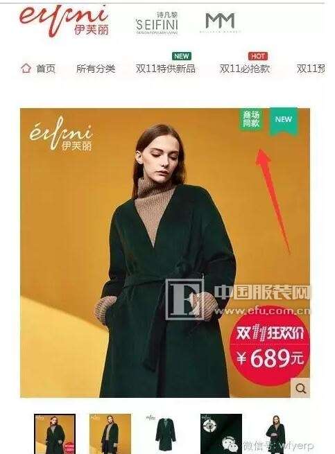 今年双11,阿里与线下品牌门店的融合将再进一步,线上线下同款同价的品牌更多。以武林银泰店为例,伊芙丽在11月11号当日线上线下同款同价。有心的亲们,可以到天猫伊芙丽旗舰店看一下,在宝贝详情页右上角将会显示-商场同款的字样,真正的做到线上线下同款同价。伊芙丽集团旗下有EIFINI伊芙丽、SEIFINI诗凡黎、MM麦檬等三大女装品牌。今年双11是EIFINI伊芙丽第一年全渠道打通,商品打通、库存打通,门店发货也已提前3个月进行运转。此外,伊芙丽旗下第三个品牌“麦檬”(英文名:MM)也将迎来其双11“首秀”。其中,麦檬于今年3月推出,主打极简北欧风,面料多为棉、麻、天丝及羊毛等天然材质,强调简约、纯净、舒适的穿着体验.全渠道的打通将大大的降低了消费者的购买误区,将再也不需要线下店面试衣服,线上还苦等降价,现在我们只需要随时随地想买则买!