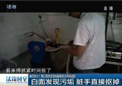 深圳电视台记者卧底一家黄记煌餐馆,发现:后厨成“苍蝇乐园”,厨工菜刀打苍蝇;大厨不洗手,捏完苍蝇再炸饼,发霉大米洗洗下锅,“不发霉洗来干嘛”,青椒、鱼等食材掉地上不用洗,淋上调料就上桌。
