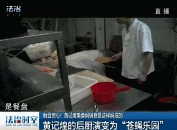 记者在暗访中发现,黄记煌的厨房简直就是“苍蝇乐园”,食材上都趴满了苍蝇。菜刀、餐盘、勺…都用来打苍蝇。更恶心的是有厨工徒手捏完苍蝇之后直接炸馅饼、切菜!