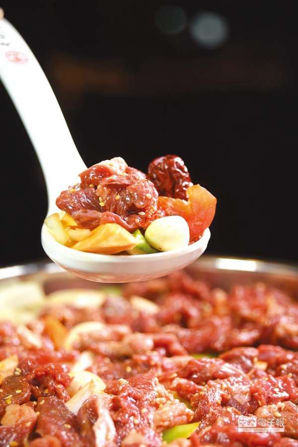 〈黄记煌〉的牛肉、鸡肉或海鲜等所有的焖锅,都在锅底放了10种蔬菜,一个锅内有荤有素,标榜营养均衡。图/姚舜