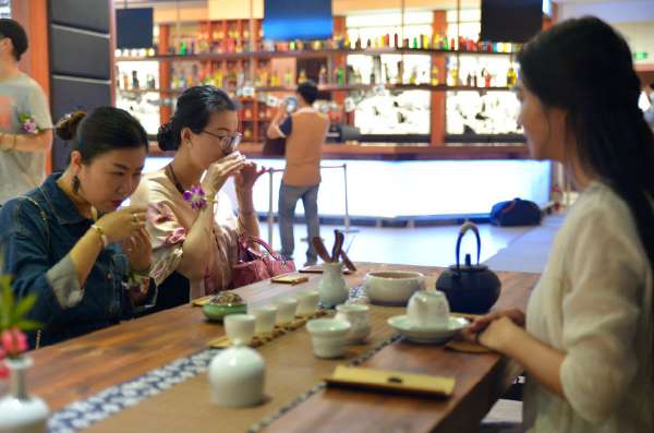 前来出席活动的李女士表示,源于对自身内在涵养提升和对企业家的崇拜,所以来到现场观摩,增强艺术情趣,生活品味。在叮咚的古琴声中细细品味大师们的书画作品,让她感觉特别静心,特别美好。