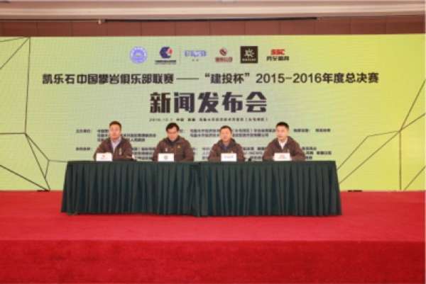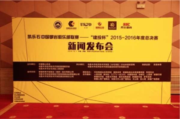 新闻发布会上,相关与会嘉宾共同进行了凯乐石中国攀岩俱乐部联赛——“建投杯”2015-2016年度总决赛的岩壁揭幕仪式,正式对外公布了总决赛即将于12月16日在新疆乌鲁木齐经济技术开发区文体中心打响。新疆乌鲁木齐经济技术开发区文体中心是乌鲁木齐地区的标志性建筑之一,建筑面积达47770平方米,共有三层,内部设有多个活动区域,能够为联赛参赛选手提供优越的比赛环境与赛场设施。近年来,攀岩运动在乌鲁木齐逐渐升温,受到了较高的关注,中攀联赛总决赛在乌鲁木齐经济技术开发区落地,这也是国家级攀岩赛事首次在新疆落地,赛事场馆内高水准的服务及场地、高规格的设施及岩壁标志着户外运动在这一地区的发展,同时也意味着体育旅游在乌鲁木齐乃至新疆地区的起航,对于区域未来的产业结构和经济发展有着深远的影响。