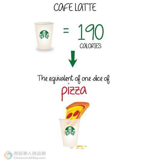一杯普通拿铁等于一片pizza的热量