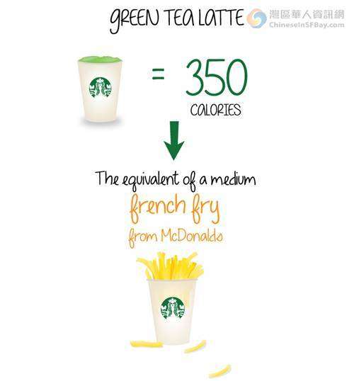 貌似很健康的绿茶拿铁和一个中型麦当劳薯条的热量是一样的