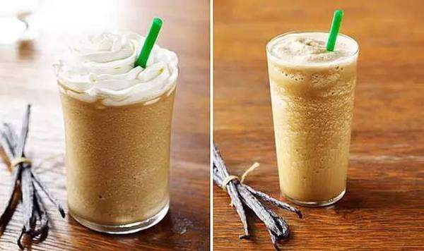 同样是16盎司一杯,卡路里数达到了430,和很多人都喜欢的抹茶星冰乐一样!事关当中加入了大量甜味的打发鲜奶油、全脂奶等等。如果需要健康一点的代替品,那么同款的低脂版Caffè Vanilla Light Frappuccino会比较好,卡路里数下降到180。