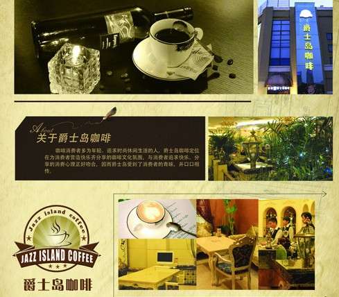 当你走在咖啡馆林立的北京三里屯,漫步在时尚浪漫的上海衡山路,你会深深感受到咖啡带来的时尚冲击。爵士岛咖啡是热恋中的情侣,是倾诉的对象,是真挚的朋友,更是合作的伙伴。爵士岛将咖啡文化推向极致,是文学、音乐、绘画、和谐、自然的完美统一,是中西方文化相通共融的最佳时尚阵营,是极富情调、尊贵唯美的艺术展示。