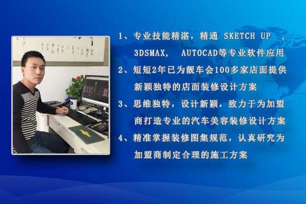 凡是在活动期间报名加盟靓车会者都将获得教授级运营专家专业指导,行业首屈一指技术人员技术培训,已为百余家店面做过设计的专业人员为您的店面做专业的装修设计!