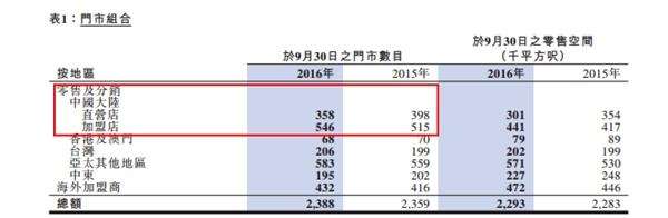 值得注意的,佐丹奴内地门店总数变化不大,但直营店及加盟店的数量却有很大变动,直营店减少40间至358间,加盟店增加31间至546间。