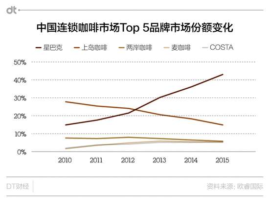 反而是星巴克,这几年一路高歌猛进,2015年更是一家独占4成以上市场份额。