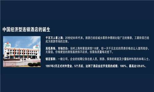 锦江之星这个品牌我觉得很自豪。今年是2016年,我们公司品牌成立于1996年,也是中国经济型酒店第一个成立的品牌,20年来,大家会觉得它在变老。我想说,锦江之星的未来会更好。我们在2015年为锦江之星只做了两件事,其实锦江之星开始做经济型酒店,做的更多的是为行业的创始,不管以前酒店是怎么样的,但是锦江之星的出现,接下来经济型酒店就随着1996年开始进入中国的酒店行业。这20年发展以来,其实我刚才看了一下,在第一排的很多都是本土的连锁化企业。我非常自豪,我们中国不会比当中这一桌差吧?有信心的鼓一下掌。在当时,锦江之星那个时候在上海还有148家星级酒店,包括有很多其他酒店比较小。但是这个时候我们就在上海的锦江乐园开了第一家酒店。其实20年来,我们一直在做的是什么?其实是提供一个很好的品质给我们的消费者,一个合适的价格给要求更高性价比的客户。