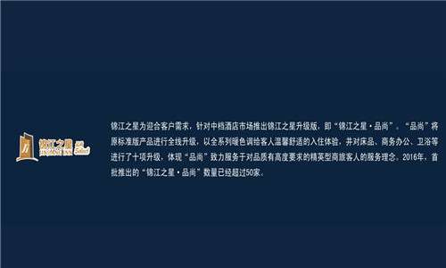 首先我先介绍一下品尚,其实锦江之星品尚比升级前,给客户提供更高品质的产品,但是同时它是在保有锦江之星原有的运营模式的情况下。