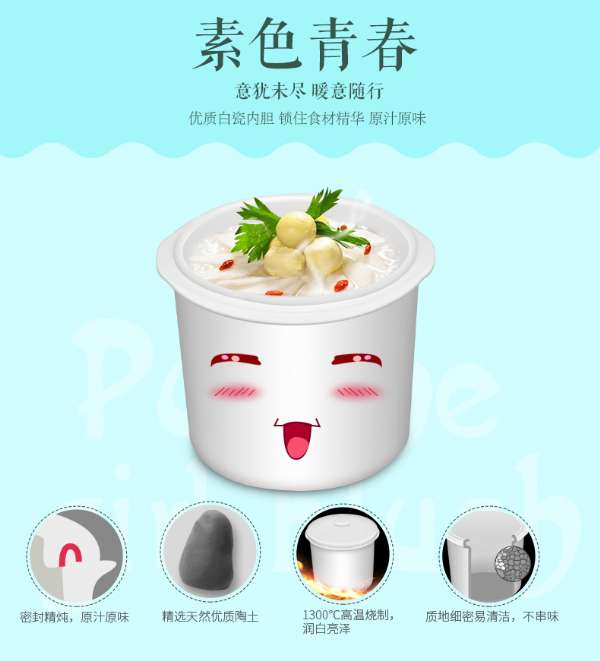 它材质天然,无异味,防烫耐用,外观简约大方,功能多样,操作简单,可熬粥、炖汤、温奶等,能满足你的多种日常需求。