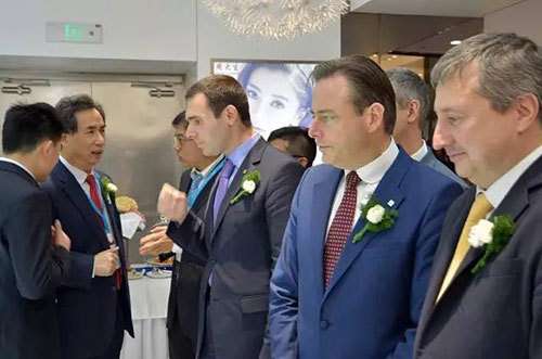 周大生珠宝董事长周宗文与安特卫普市长巴尔特.德韦弗(Bart de Wever)、安特卫普副市长范锦豪(Ludo Van Campenhout)、HRD董事局主席阿里.爱普斯坦(Ari Epstein)、上海钻石交易所总裁林强、上海市钻石交易管理办公室副主任倪华、上海新世界大丸百货董事长孙忠明等嘉宾一起出席了“周大生&HRD Antwerp上海卓越体验店”揭幕仪式。