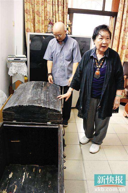 那是1948年的11月,我的工资是20元一天,当时一钱金是9元。这个箱子值3两金,是在广州河南鳌洲直街一个老铺子做的,一过海就见,专门做靓箱的。做箱是纯手工,要拣靓木。”