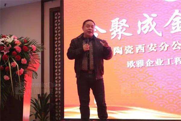 欧美陶瓷西安分公司总经理肖胜华在会上报告及做营销展望