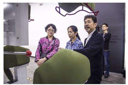 在利郎技术部人员的陪同下,井口老师走进披着“黑色酷感外衣”的时尚总部,在企业文化长廊中感受利郎的简约内涵,当走进利郎样衣室的时候,井口老师不自觉地凑向模特道具,饶有兴趣地把捏利郎2016新品西装的版型细节,并给出了适当的调整建议。