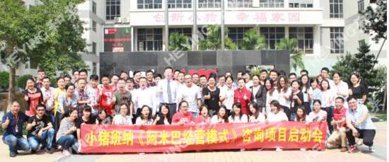 2016年11月16日,为了更好制定量身方案,解决企业实际问题,和英咨询集团项目小组谢民、祁兵老师带队与小猪班纳数名高层进行详细访谈,并走访公司各部门、渠道等了解企业现状后,初步确定展开小猪班纳阿米巴经营巴长特训营。11月17-18日,小猪班纳·阿米巴经营全案咨询项目在小猪班纳商学院正式启动,80多位中高层干部顾不上双十一连续奋战的辛劳,全身心投入到阿米巴经营专业学习中。