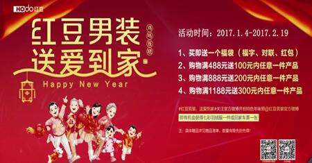 据悉,自1月4日至2月19日,红豆男装全国正价门店举行“红豆男装 送爱到家活动,方便为爱你的和你爱的人挑选爱的年货。另外,红豆男装官方微博活动也同步开启:关注官方微博,发起#红豆男装,送爱到家#话题,并拍特色年味照@红豆男装官方微博,即有机会获得七彩羽绒一件或回家车票一张。