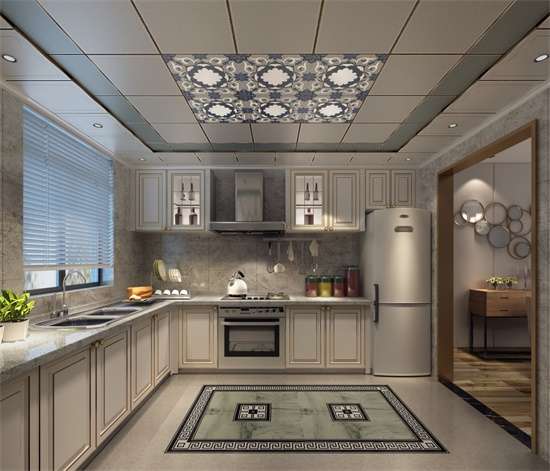 在“花瓷玉影”厨房,看花开盛放、青瓷游顶,高低起伏,中式意蕴之景。