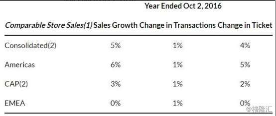 我相信每一个餐饮公司,都对星巴克出类拔萃的同店销售额感到眼红,同时,星巴克今年的数据只比2015年完成星巴克日本的收购案后低了5%,那个案子在2015年,为星巴克创造了巨大地区增长。因此我们可以看到,星巴克在维持并推动同店销售额这点上,完成的非常出色。