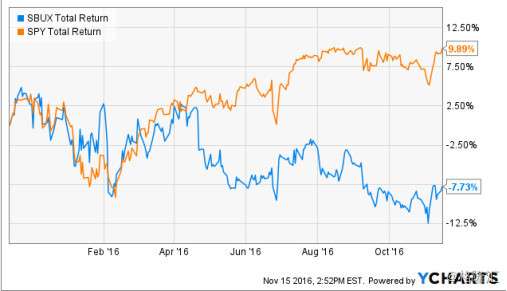 尽管星巴克(NASDAQ:SBUX)去年的销售表现很不错,但是股价走势在去年,都呈下降趋势。