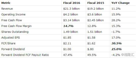 其实不止管理层,随着FCF/share的大幅度增加,我对星巴克2017年的分红,很有信心。具体数据我们可以看下图。