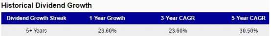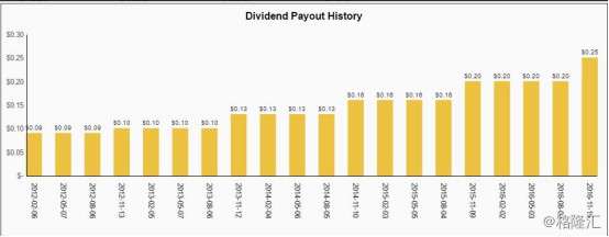 我们可以看到,星巴克5年的复合增长率可以达到30.5%,同时在今年下半年派息达到了历史最高0.25每股。