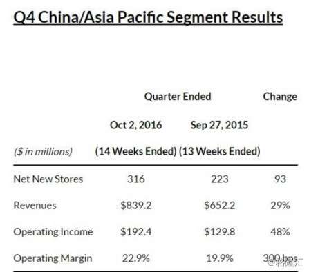 从长期来看,星巴克的增长是是十分健康的。2016年,公司仅仅用了一年便开了2041家新店,而2015年只开了1677家,2017年新开店预计可以达到2100家。
