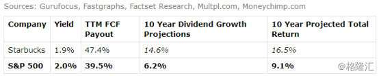 换句话说,因为我们都知道长期的回报是由收益+分红增长所驱动的,所以,投资星巴克的回报率完全可以碾压市场先生9.1%的复合增长率